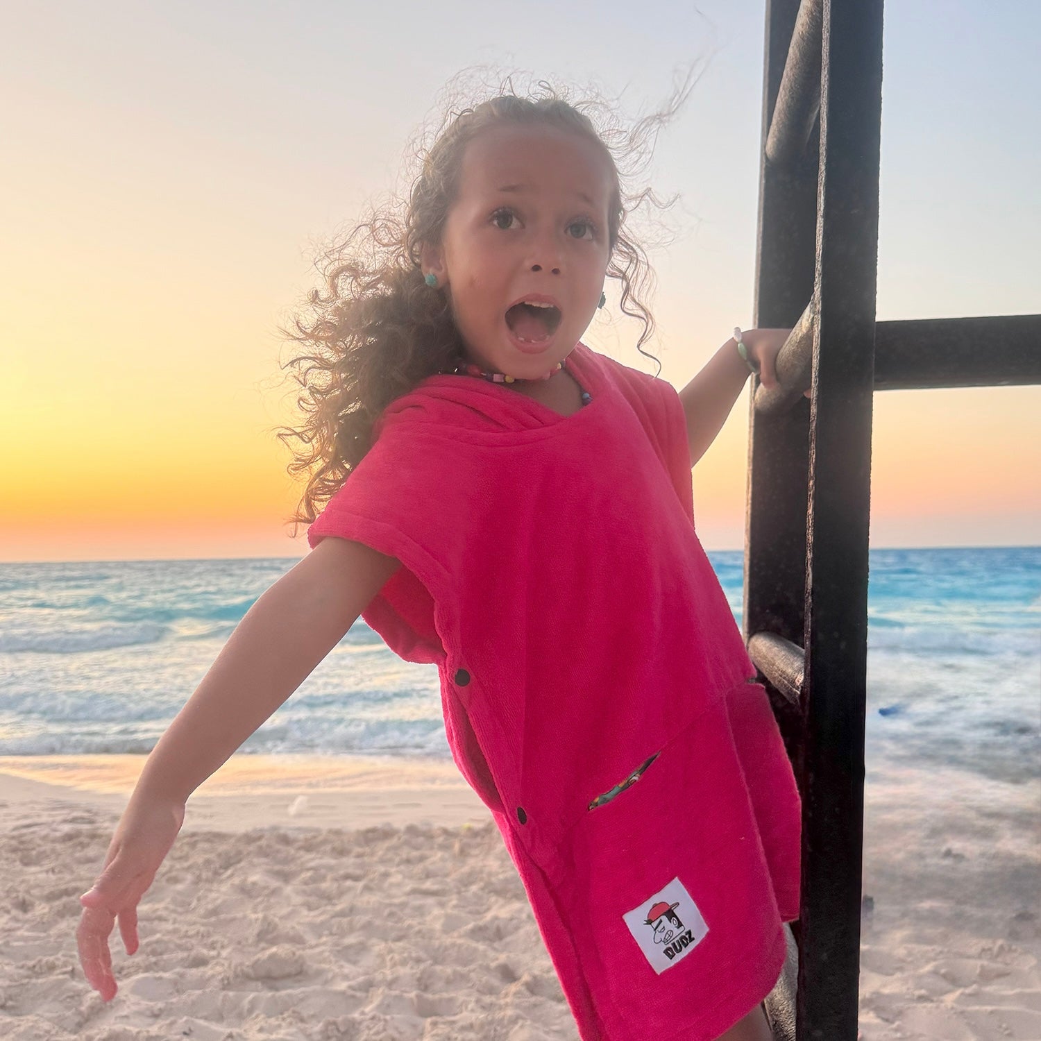 Chaos-tested, kid-approved. The DUDZ Kids' Poncho is crafted from soft, premium Egyptian cotton, designed specifically to keep up with energetic kids. Its quick-drying fabric and playful, vibrant colors make drying off after a swim effortless and fun. With an easy-wear, roomy fit and comfortable hood, it’s the perfect accessory to wrap your little explorers in softness and style all summer long.